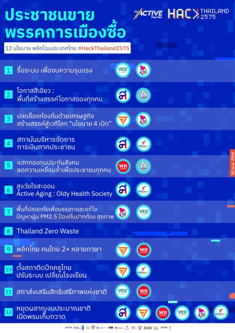 ภาคีเครือข่ายภาคประชาชนเสนอ 12 นโยบาย ในงาน Hack Thailand 2575 พลิกโฉมประเทศไทย โดย Thai PBS